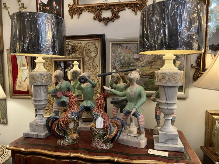 Solid marble pair of lamps